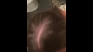 Sucking in a public restroom with messy facial